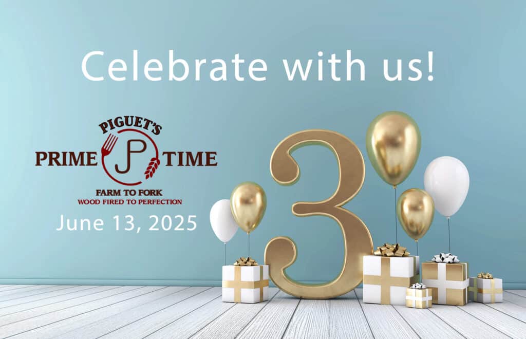 At Piguet’s Prime Time, we are delighted to be a part of hundreds of celebrations each year, whether it’s a reunion or wedding we cater or a private anniversary celebration at our restaurant. On June 13th, we would love to host you as we have a celebration of our own: our third anniversary! Our anniversary […]
